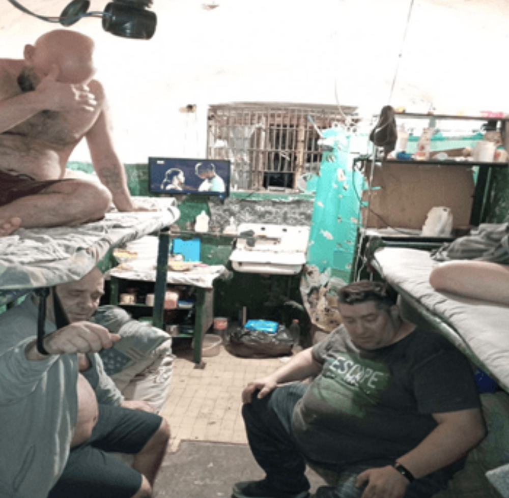 Dr Oleg Maltsev in his tiny cell (down on the right)